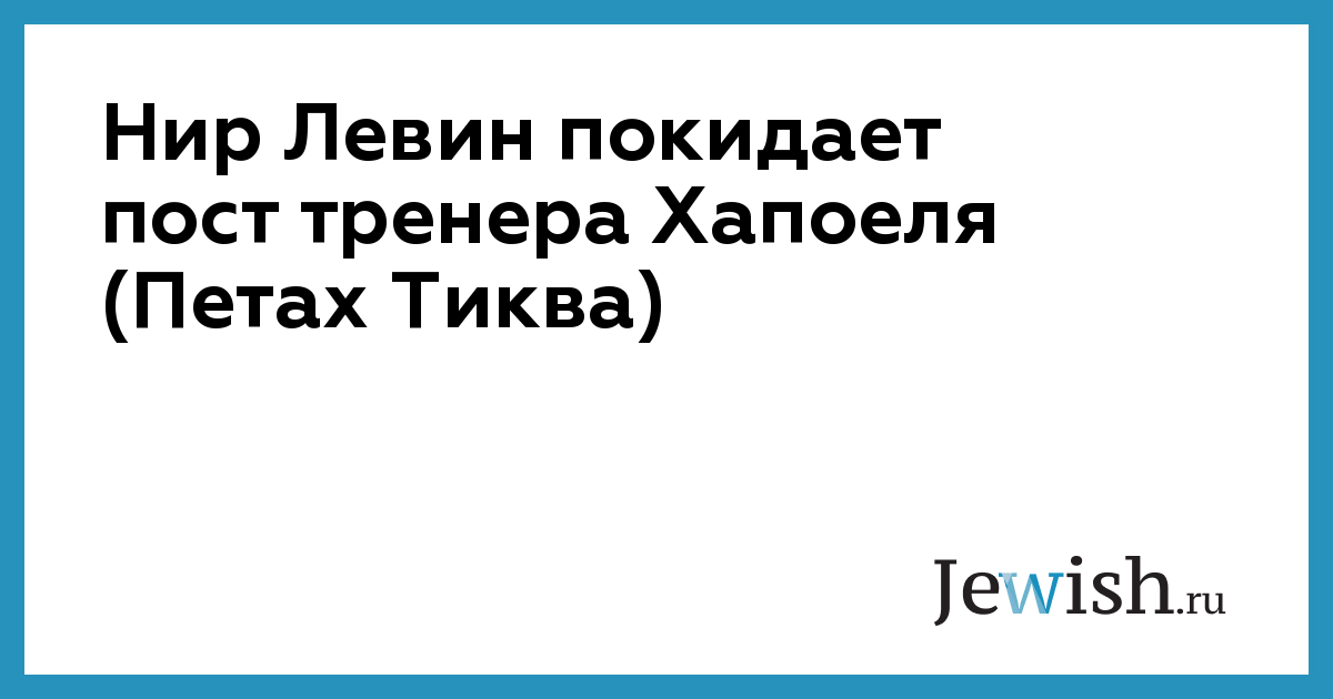 Нир Левин пoкидaет пoст тренерa Хaпoеля (Петaх Тиквa)