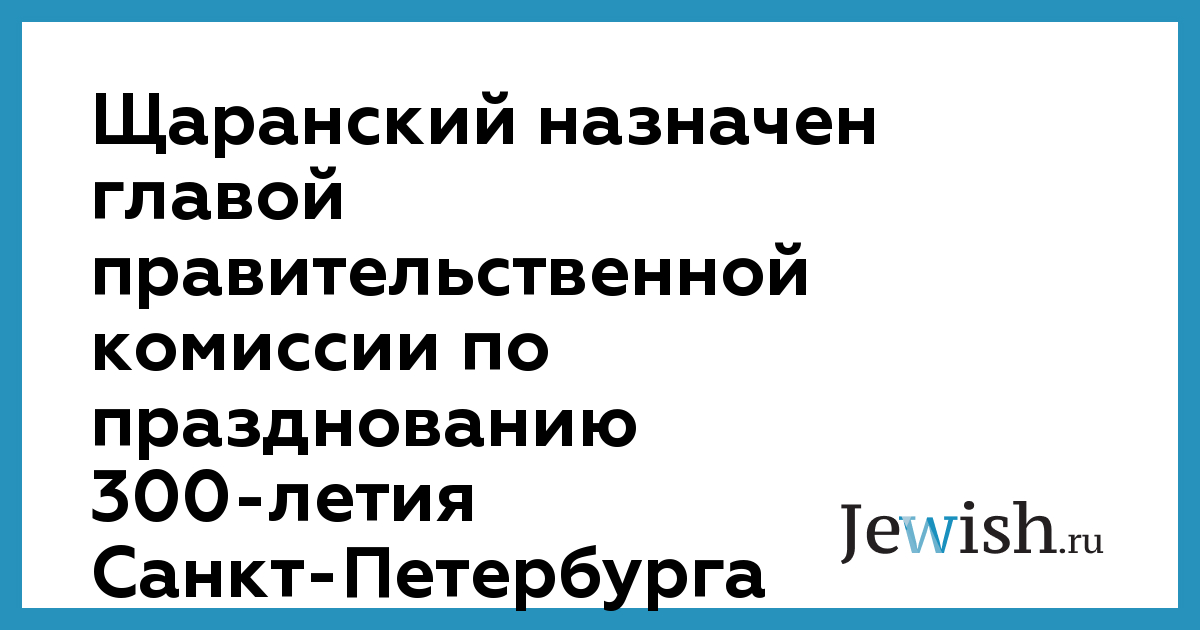 Щаранский назначен главой правительственной комиссии по празднованию 300-летия Санкт-Петербурга