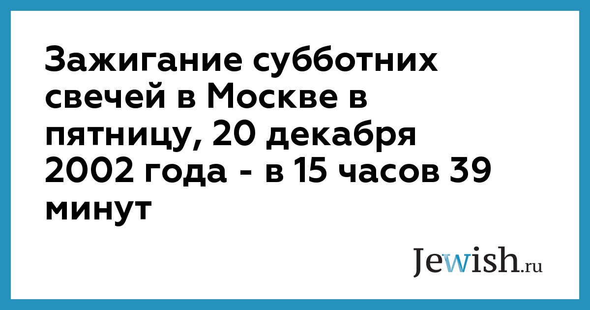 Зажигание субботних свечей в Москве в пятницу, 20 декабря 2002 года — в 15 часов 39 минут
