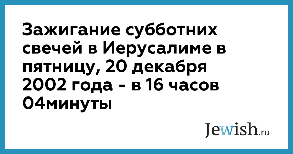 Зажигание субботних свечей в Иерусалиме в пятницу, 20 декабря 2002 года — в 16 часов 04минуты
