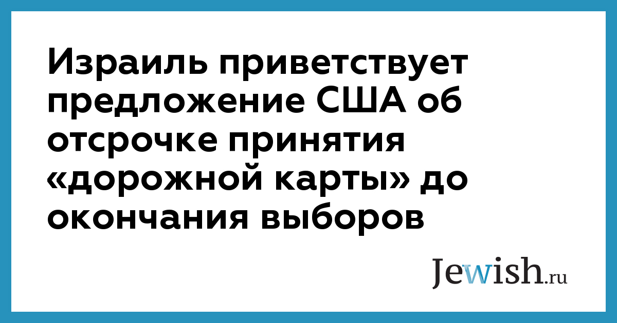 Израиль приветствует предложение США об отсрочке принятия «дорожной карты» до окончания выборов
