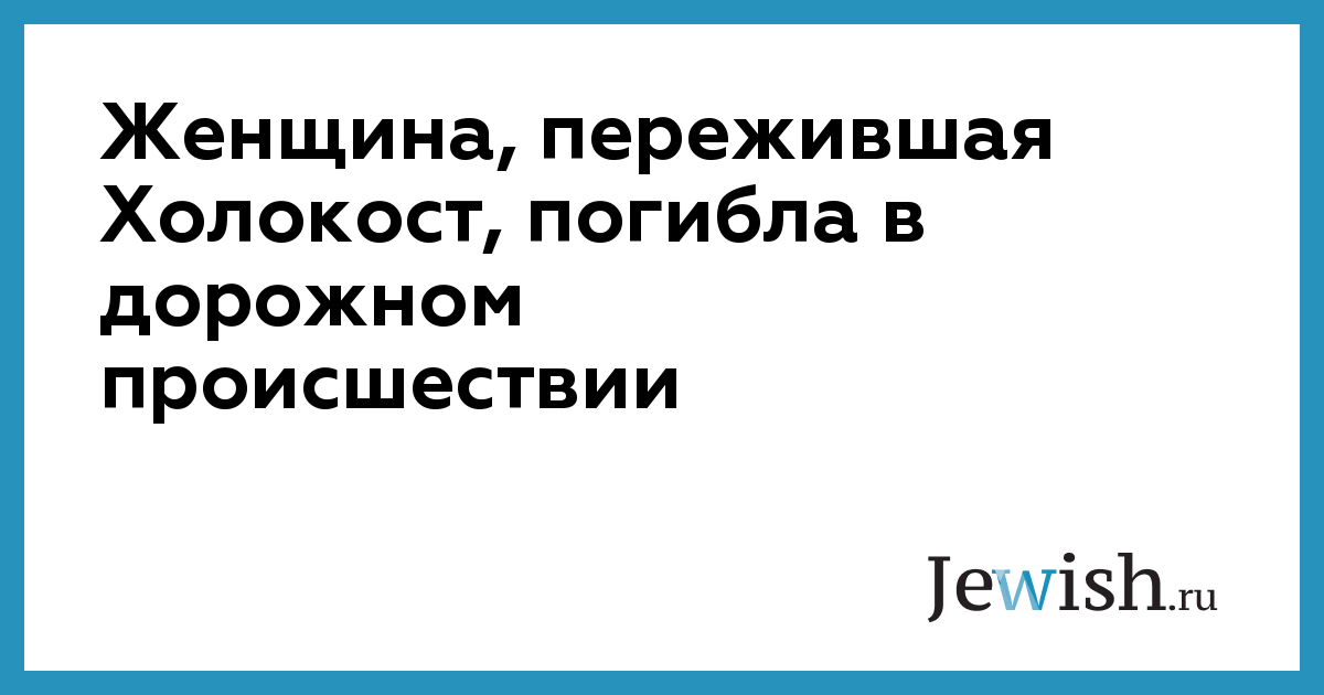 Женщина, пережившая Холокост, погибла в дорожном происшествии