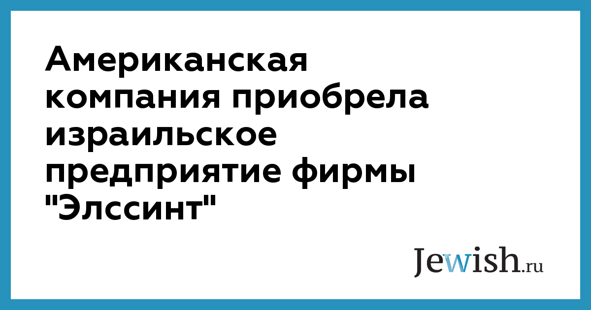 Американская компания приобрела израильское предприятие фирмы "Элссинт"
