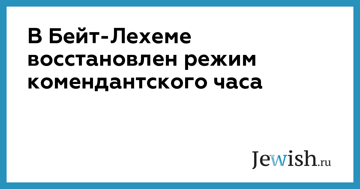В Бейт-Лехеме восстановлен режим комендантского часа