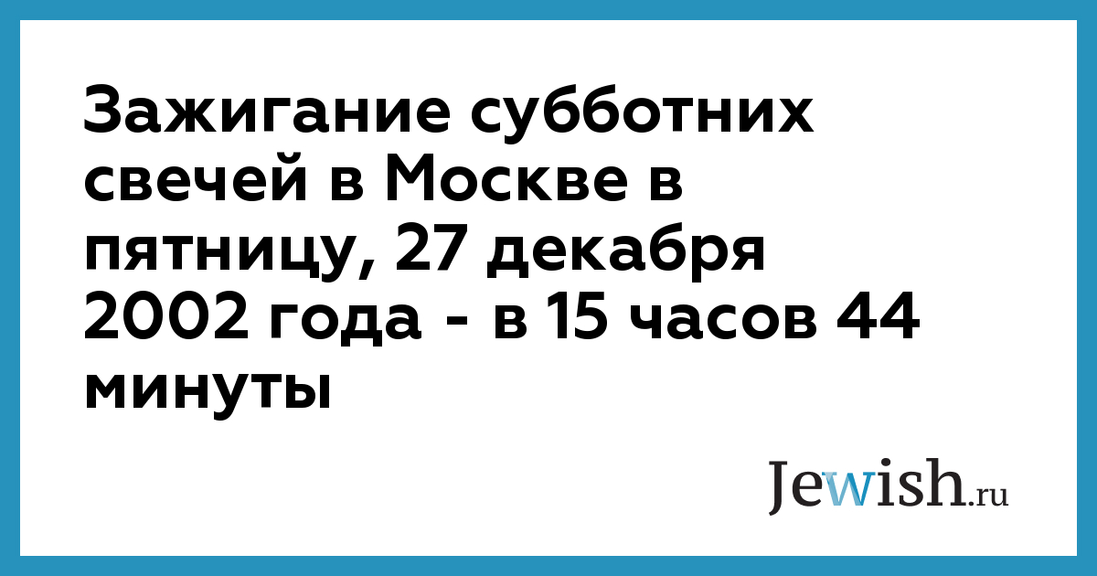 Зажигание субботних свечей в Москве в пятницу, 27 декабря 2002 года — в 15 часов 44 минуты