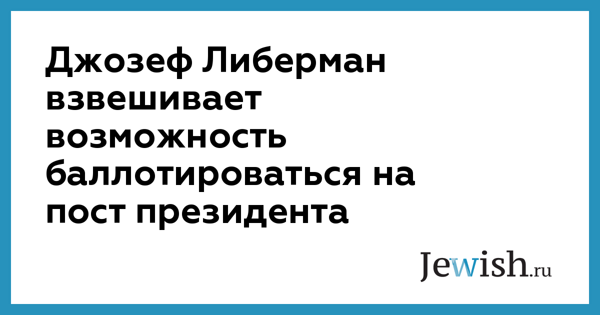 Джозеф Либерман взвешивает возможность баллотироваться на пост президента