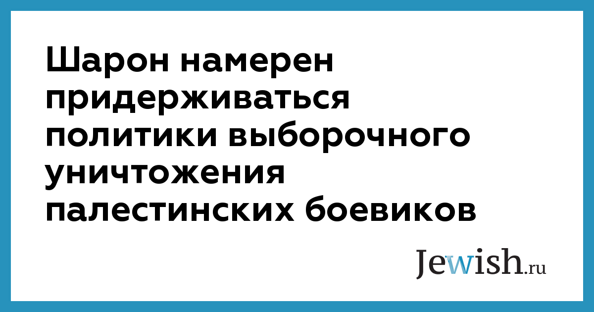 Шарон намерен придерживаться политики выборочного уничтожения палестинских боевиков