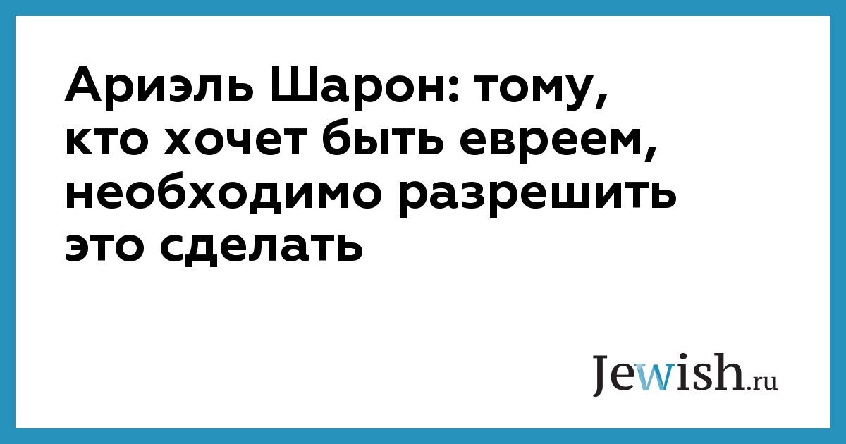 Ариэль Шарон: тому, кто хочет быть евреем, необходимо разрешить это сделать