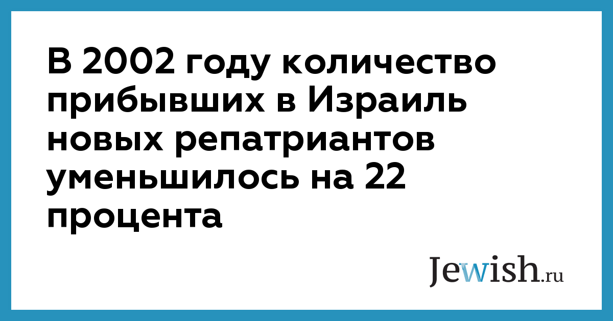 В 2002 году количество прибывших в Израиль новых репатриантов уменьшилось на 22 процента