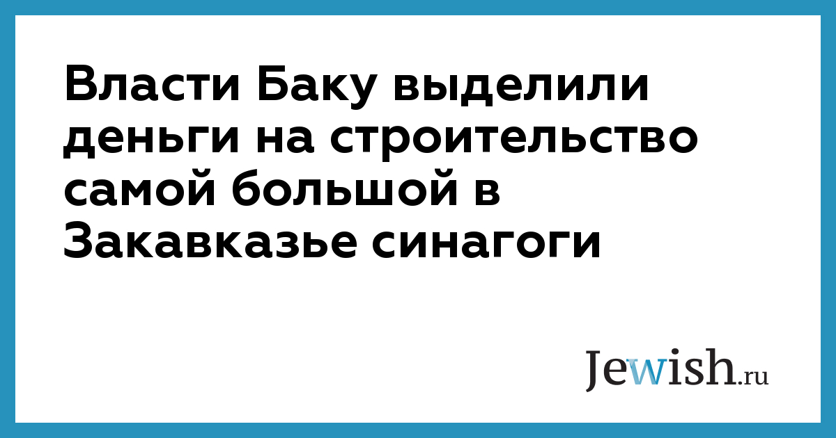 Власти Баку выделили деньги на строительство самой большой в Закавказье синагоги