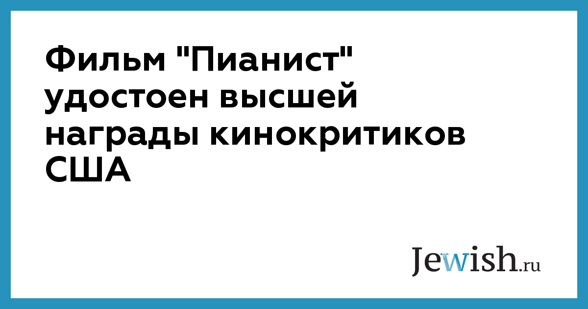 Фильм "Пианист" удостоен высшей награды кинокритиков США