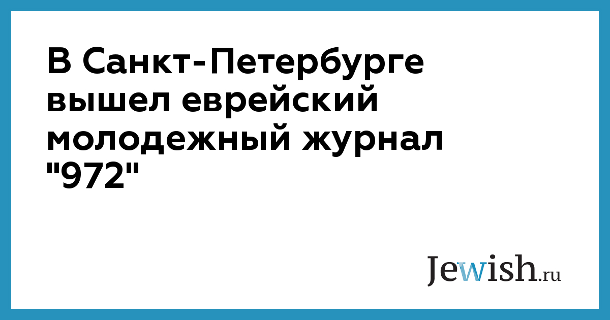 В Санкт-Петербурге вышел еврейский молодежный журнал "972"