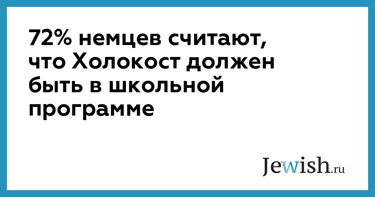 Большинство населения Германии (72 процента) придерживается мнения о необходимости постоянного напоминания о том, что в Германии во времена национал-социализма была предпринята попытка уничтожения еврейского народа. 65 процентов опрошенных считают, что холокост должен быть обязательной частью школьной программы.