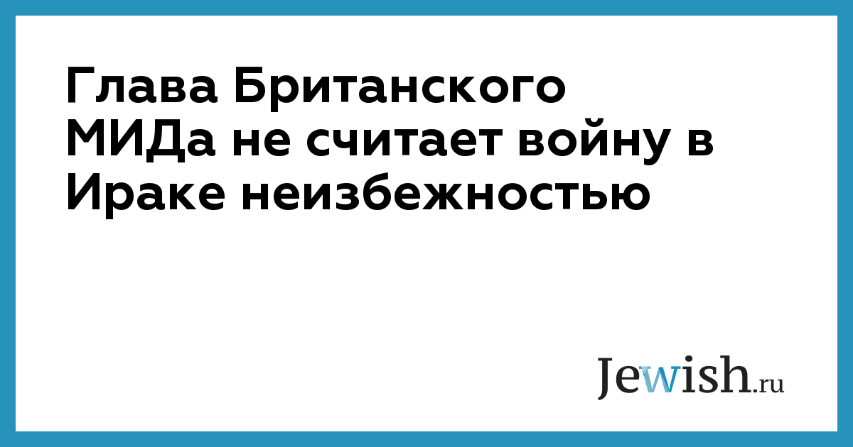 Глава Британского МИДа не считает войну в Ираке неизбежностью