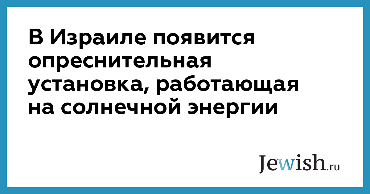 В Израиле появится опреснительная установка, работающая на солнечной энергии