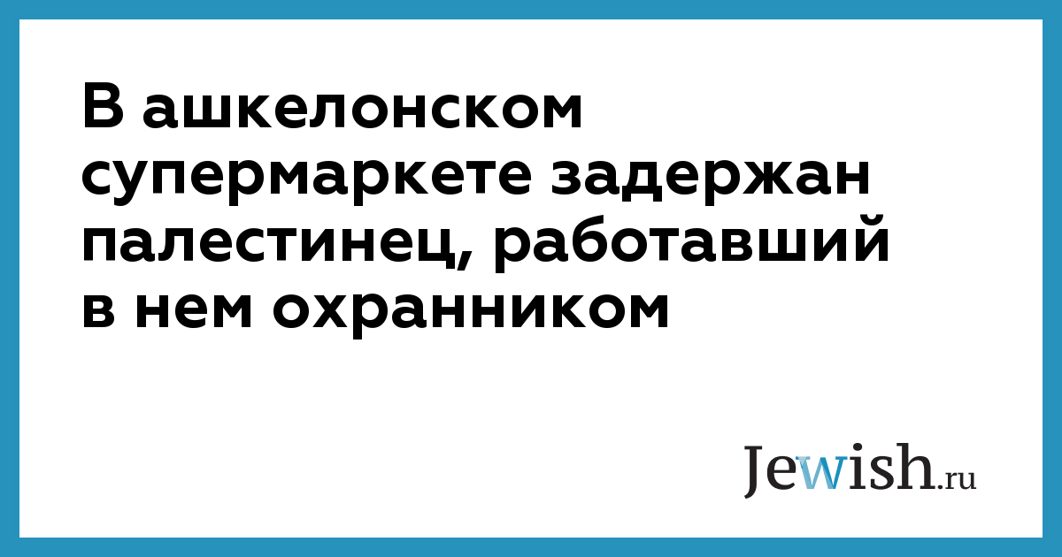 В ашкелонском супермаркете задержан палестинец, работавший в нем охранником
