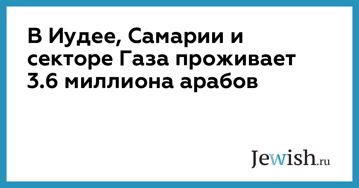 В Иудее, Самарии и секторе Газа проживает 3.6 миллиона арабов