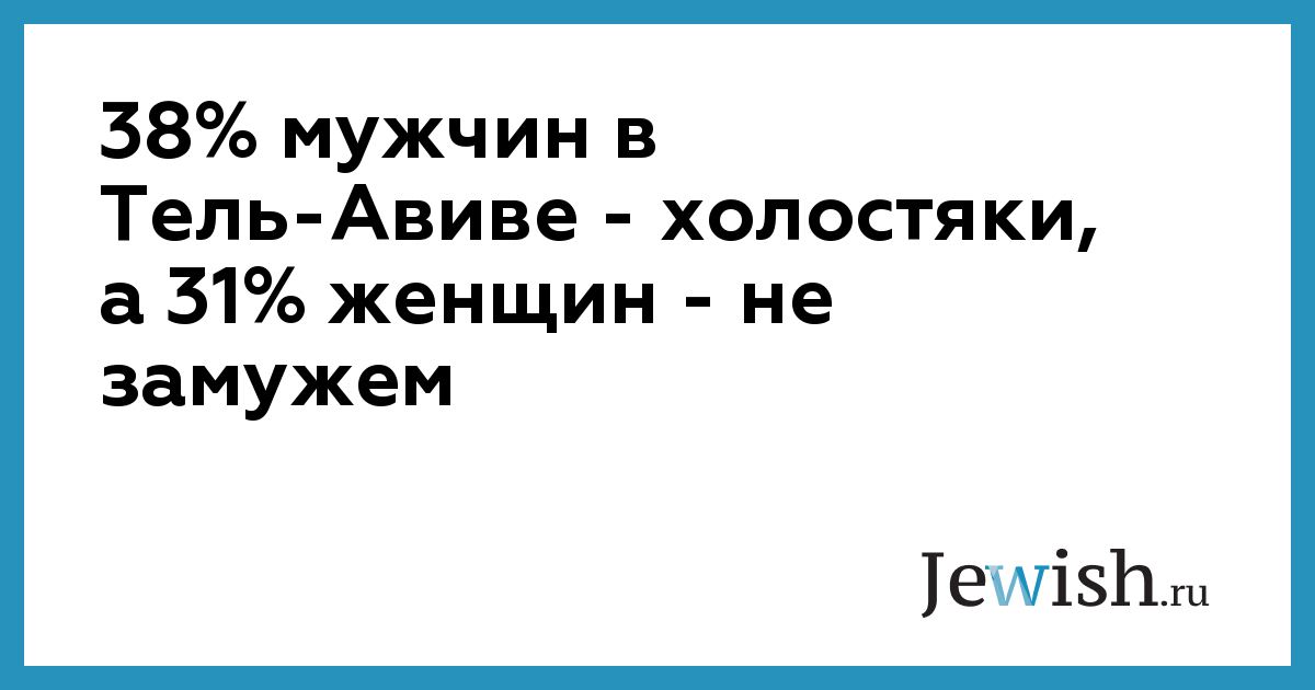 38% мужчин в Тель-Авиве — холостяки, а 31% женщин — не замужем