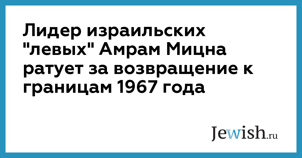 Лидер израильских "левых" Амрам Мицна ратует за возвращение к границам 1967 года