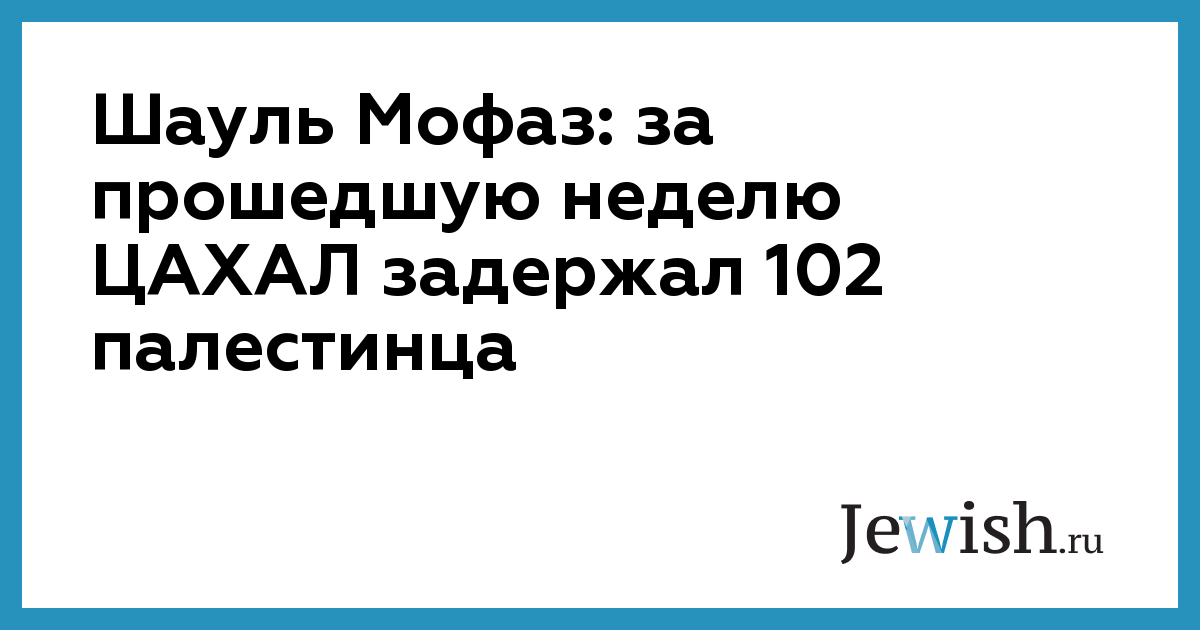 Шауль Мофаз: за прошедшую неделю ЦАХАЛ задержал 102 палестинца