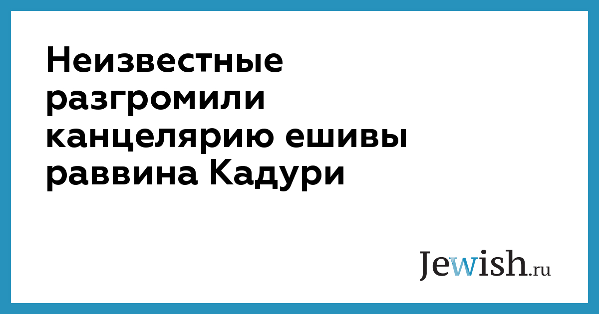 Неизвестные разгромили канцелярию ешивы раввина Кадури