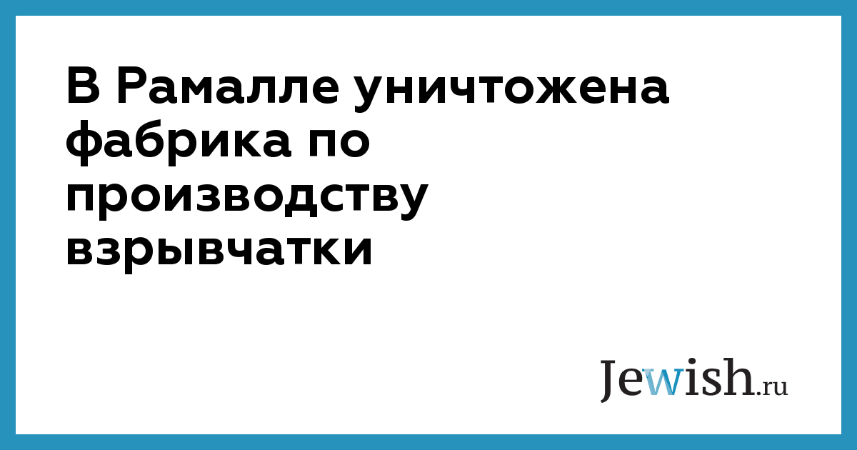 В Рамалле уничтожена фабрика по производству взрывчатки