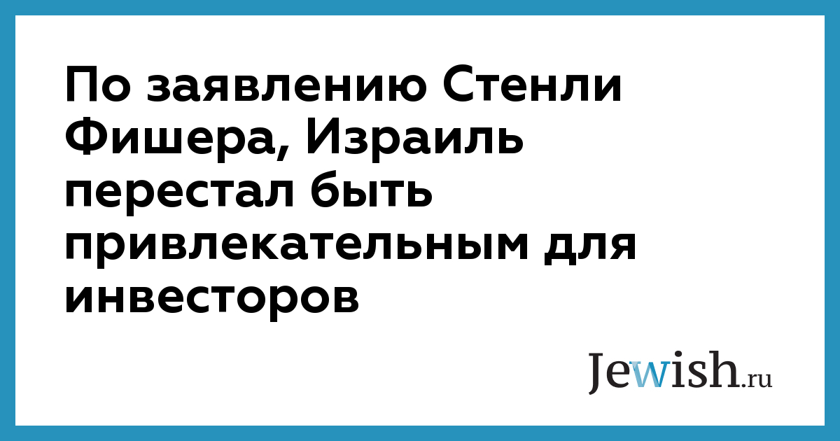 По заявлению Стенли Фишера, Израиль перестал быть привлекательным для инвесторов