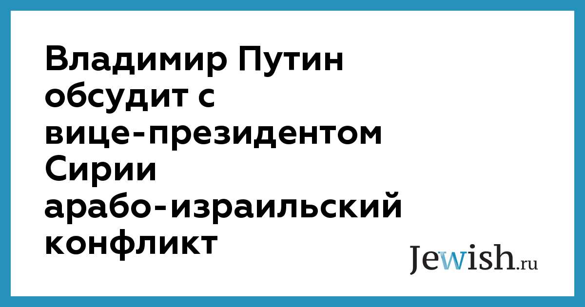 Владимир Путин обсудит с вице-президентом Сирии арабо-израильский конфликт