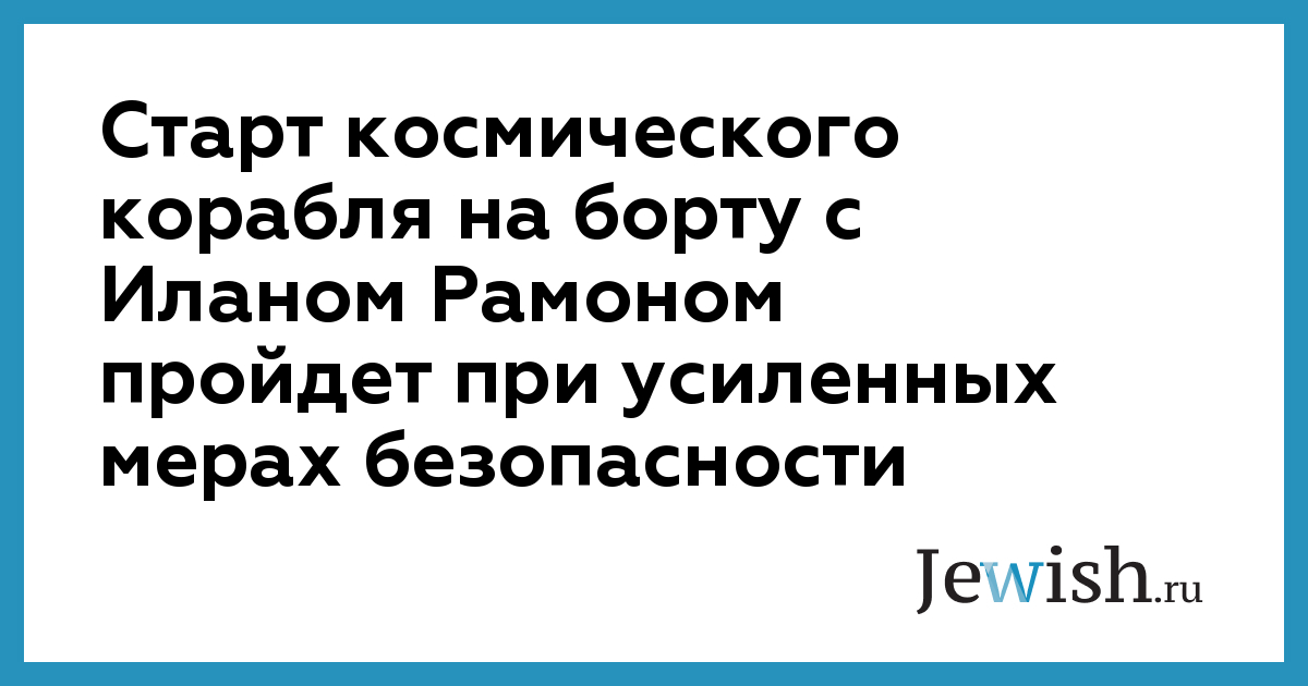 Из-за участия в проекте израильского астронавта приняты беспрецедентные меры безопасности. Участников пресс-конференции в НАСА во вторник охраняли коммандос. Территория на многие мили вокруг космодрома блокирована полицией и армией. Воздушное пространство патрулируют истребители F-15.