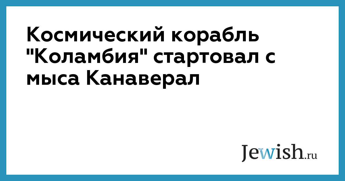 Космический корабль многоразового использования «Коламбия» стартовал со взлетной площадки на мысе Канаверал во Флориде в 17:39 по израильскому времени. На борту корабля находится семь астронавтов, среди которых первый израильский астронавт Илан Рамон.Подъем корабля с Земли на орбиту продлится 8,5 минут, а весь полет в космосе — 16 дней.
