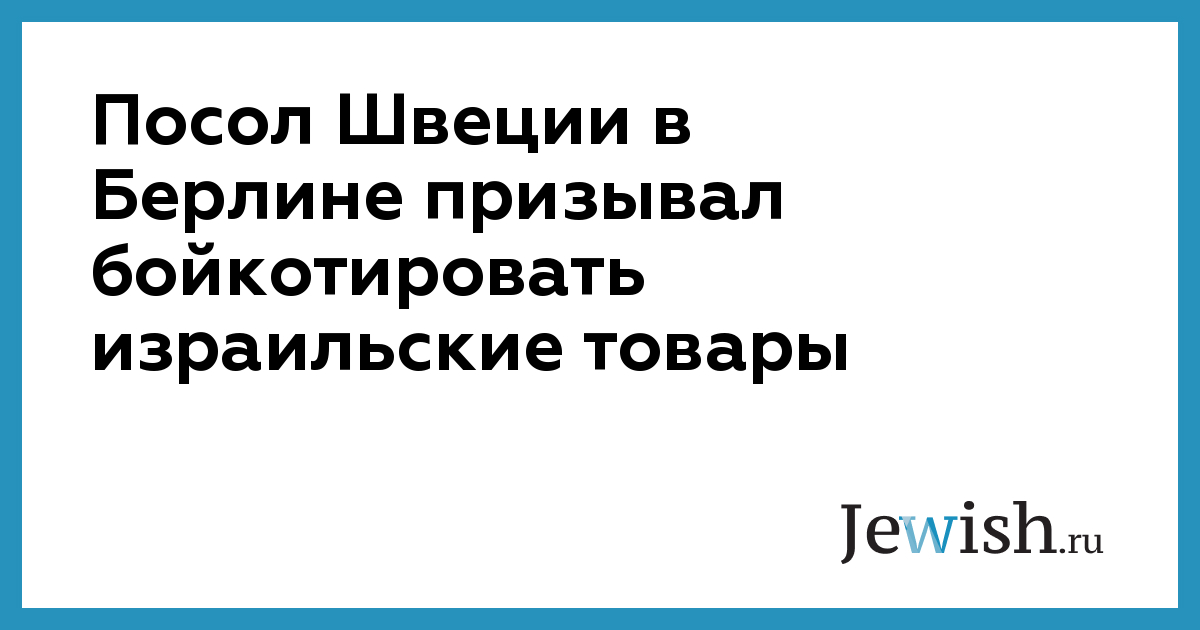 Посол Швеции в Берлине призывал бойкотировать израильские товары