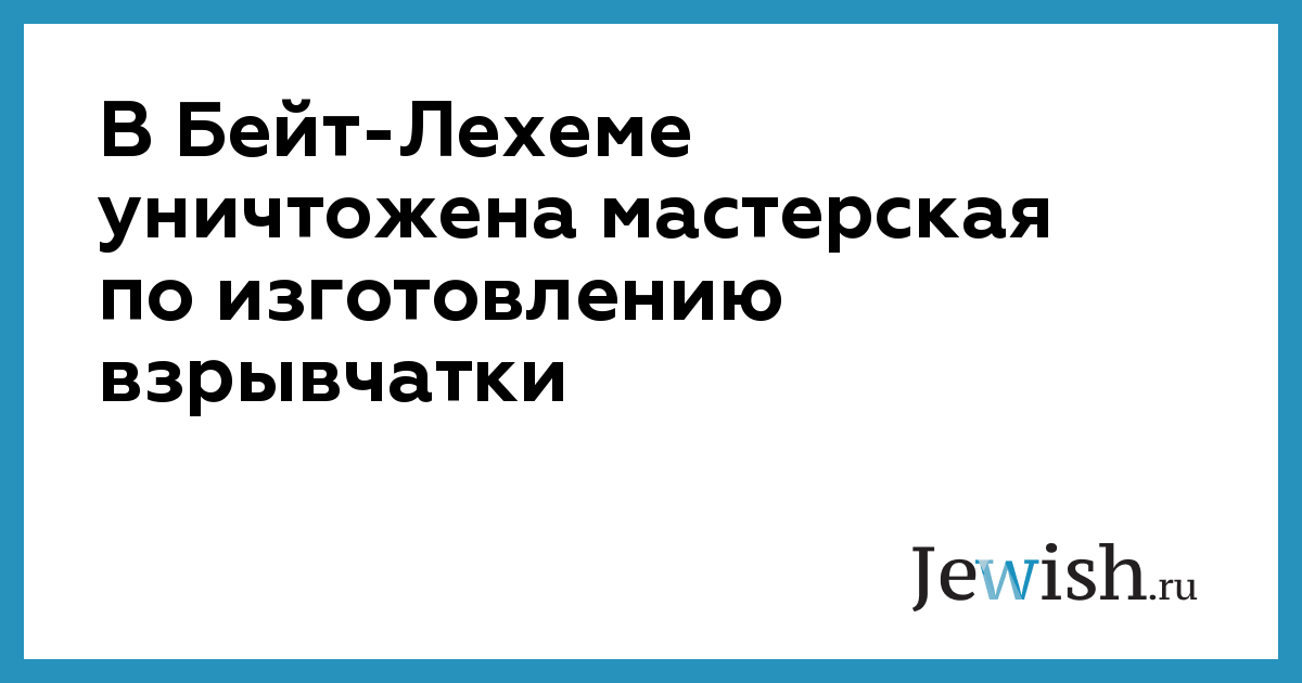 В Бейт-Лехеме уничтожена мастерская по изготовлению взрывчатки