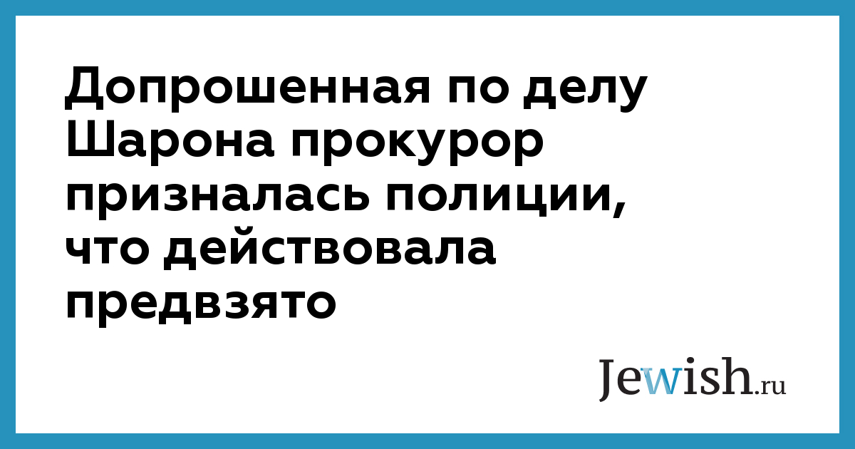 Допрошенная по делу Шарона прокурор призналась полиции, что действовала предвзято