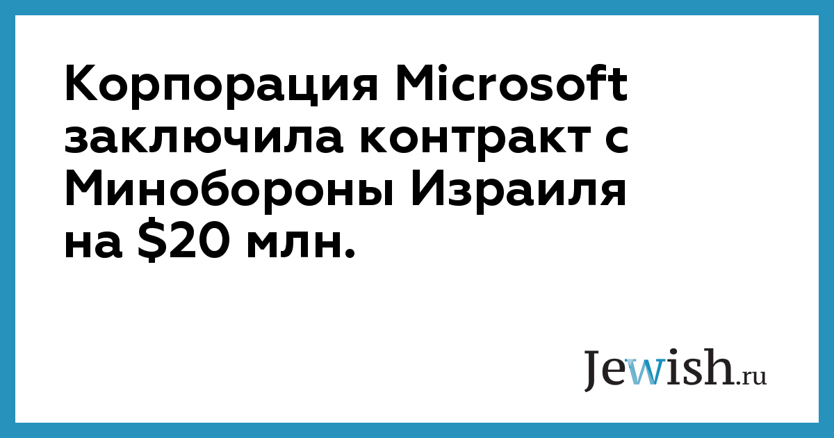Корпорация Microsoft заключила контракт с Минобороны Израиля на $20 млн.