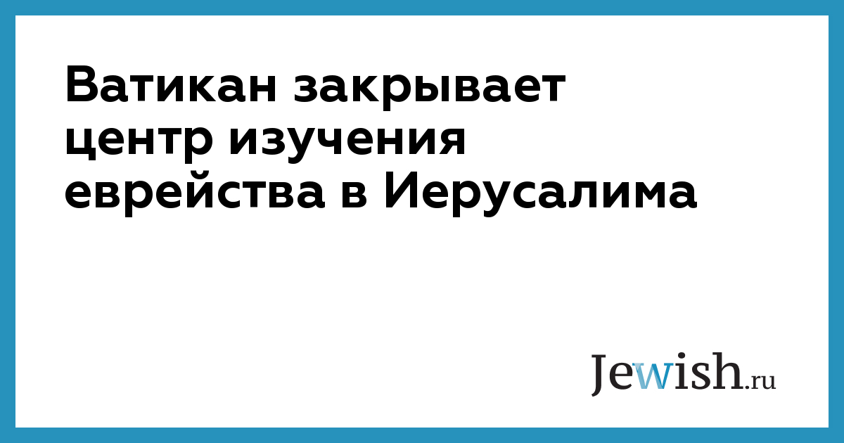 Ватикан закрывает центр изучения еврейства в Иерусалима