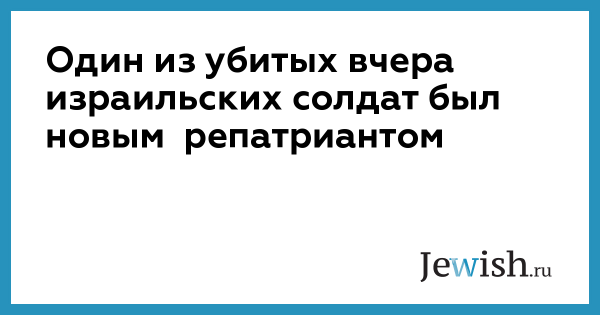 Один из убитых вчера израильских солдат был новым репатриантом