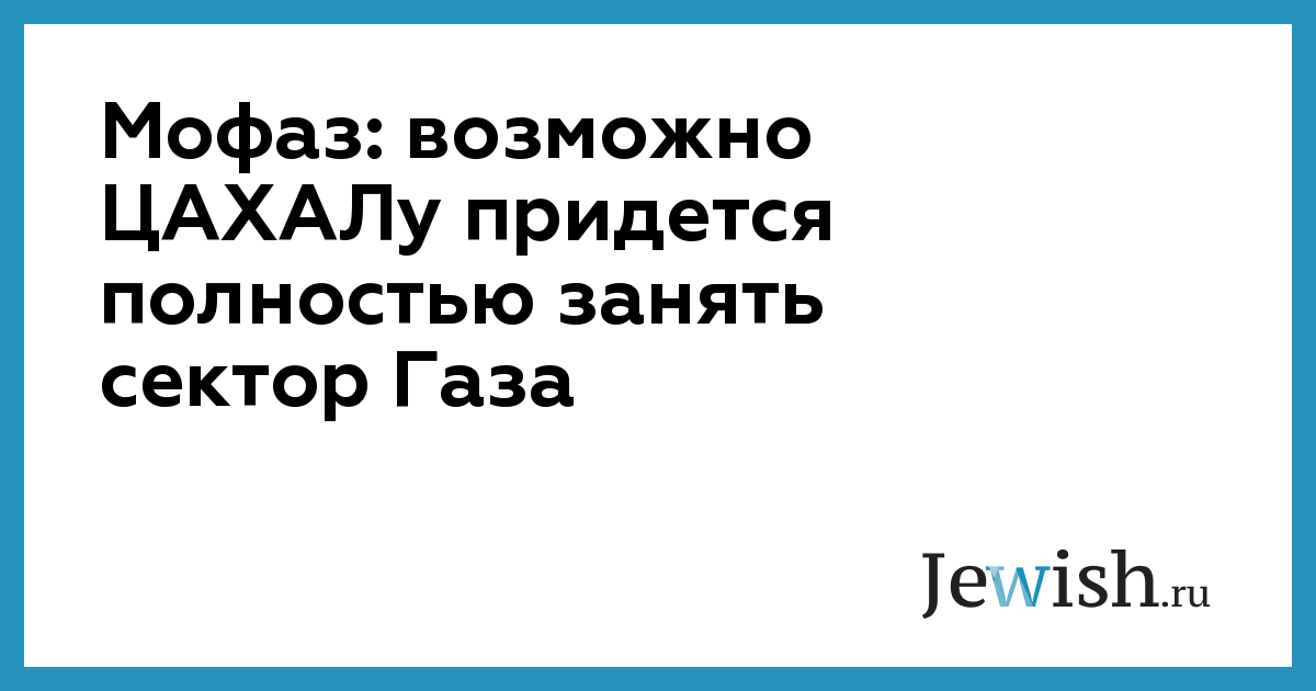 Мофаз: возможно ЦАХАЛу придется полностью занять сектор Газа
