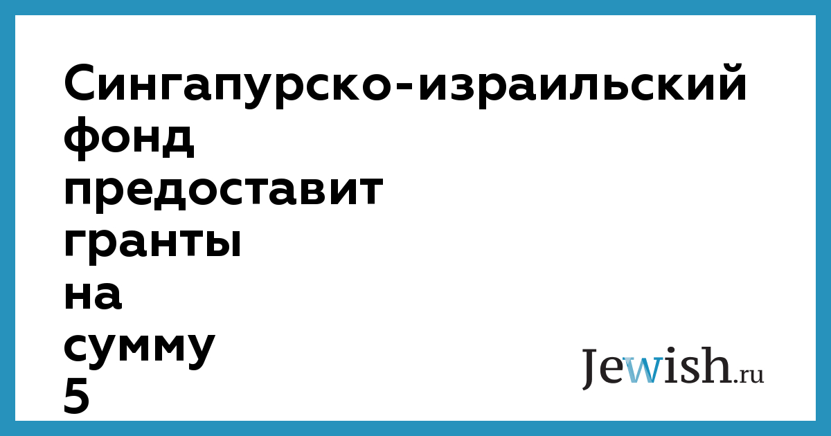 Сингапурско-израильский фонд предоставит гранты на сумму 5 миллионов долларов