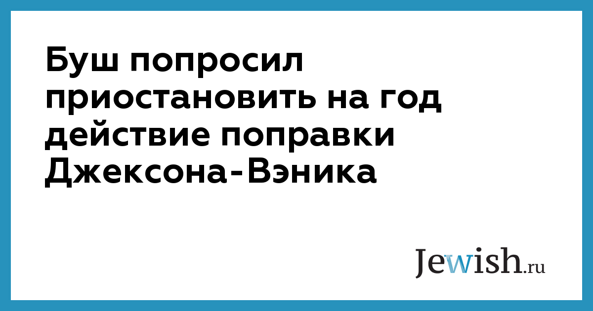 Буш попросил приостановить на год действие поправки Джексона-Вэника