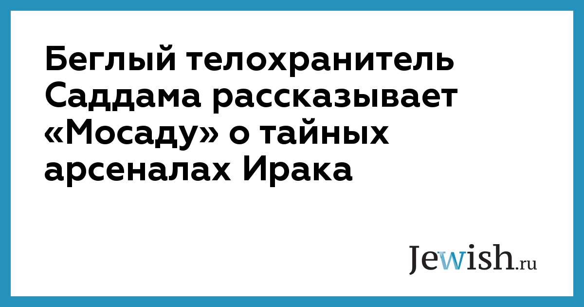 Беглый телохранитель Саддама рассказывает «Мосаду» о тайных арсеналах Ирака