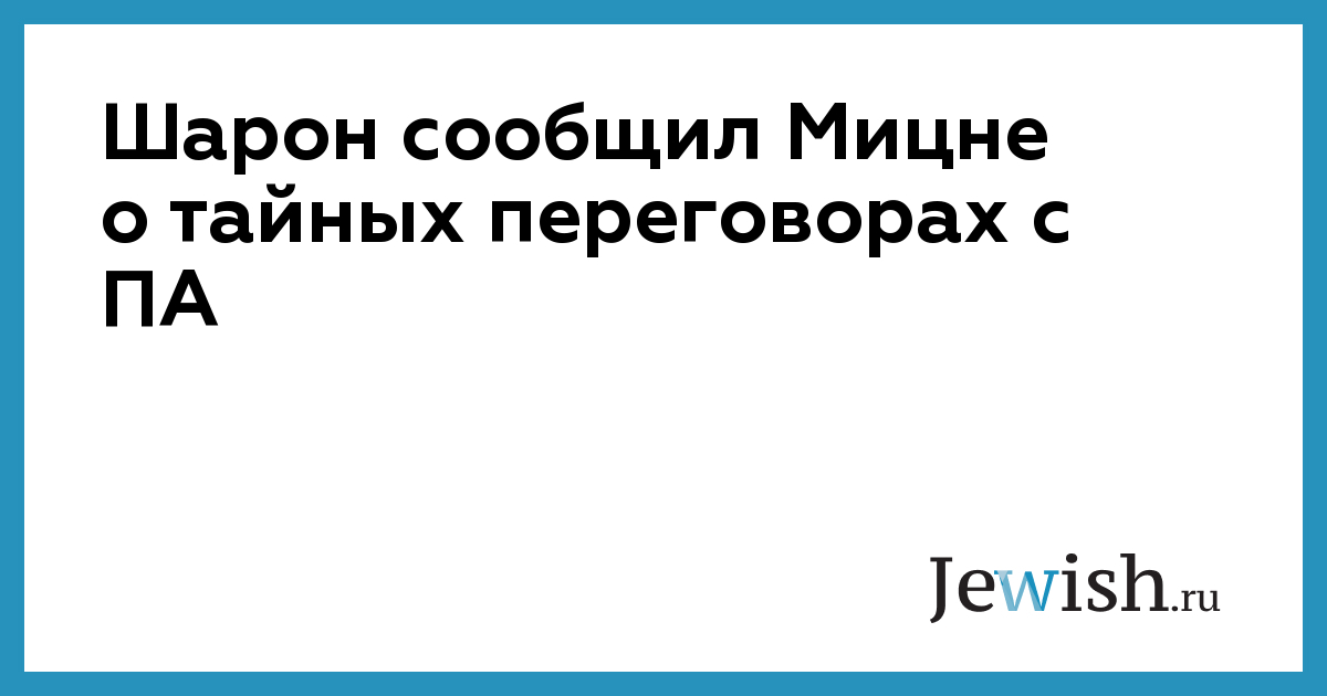 Шарон сообщил Мицне о тайных переговорах с ПА