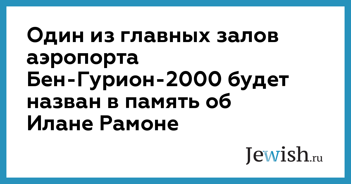 Один из главных залов аэропорта Бен-Гурион-2000 будет назван в память об Илане Рамоне