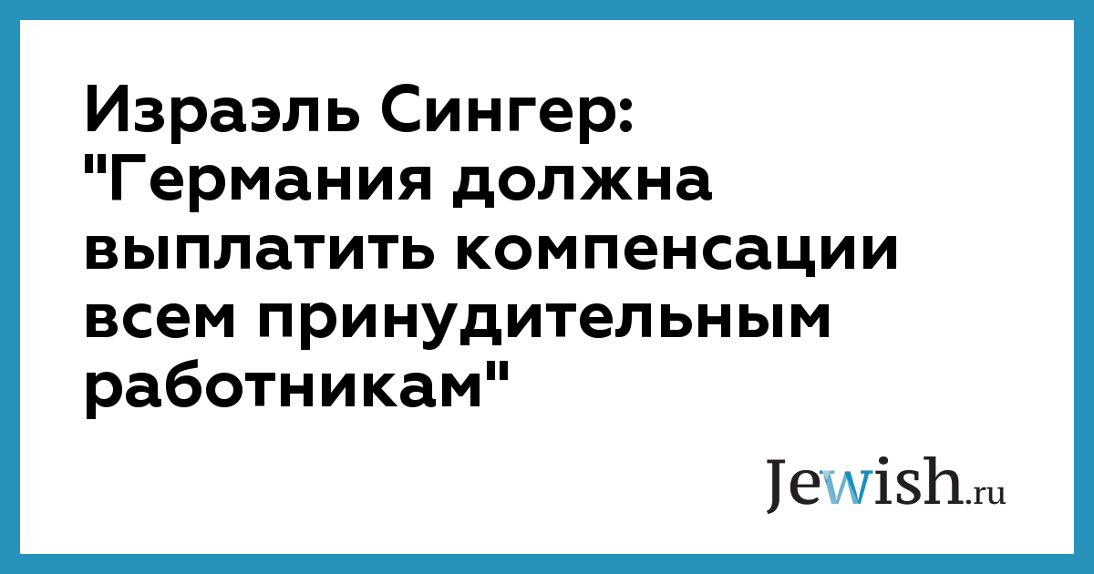 Израэль Сингер: "Германия должна выплатить компенсации всем принудительным работникам"