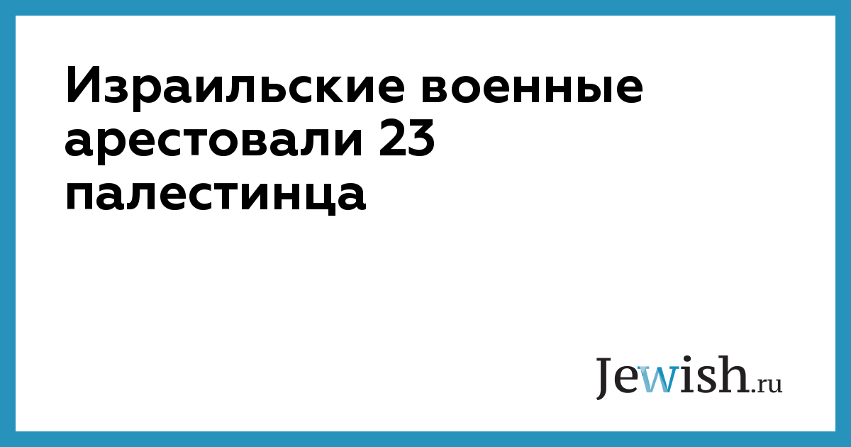 Аресты прошли в районах Вифлеема, Рамаллаха и Хеврона. Там задержаны 23 палестинца, которых допрашивают следователи израильской Общей службы безопасности ШАБАК.