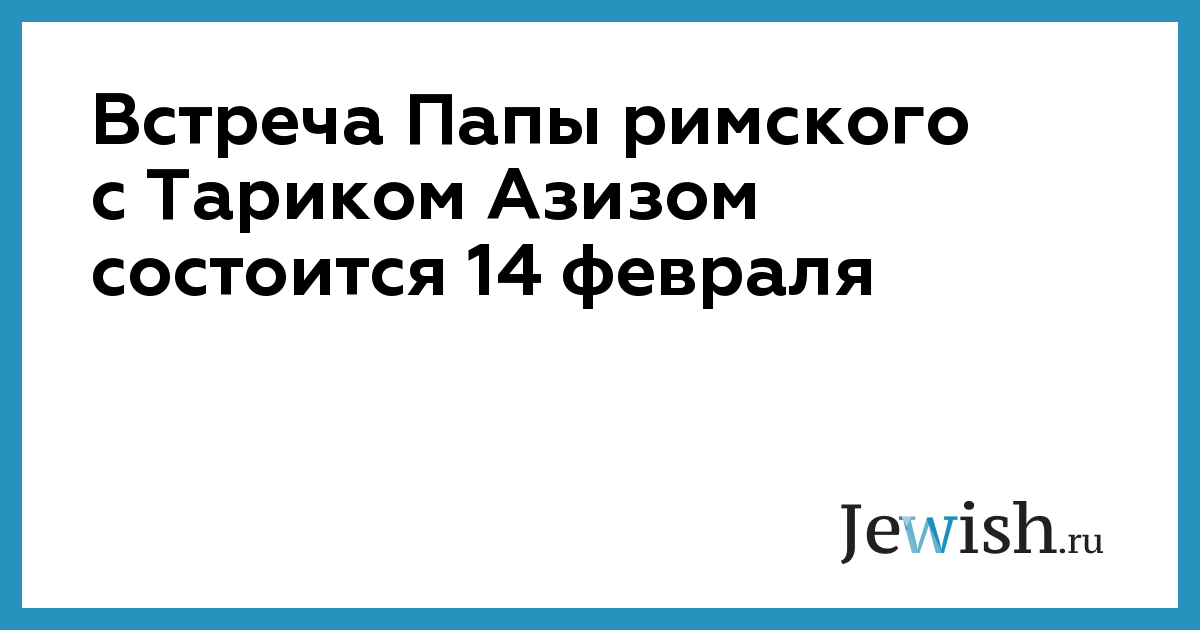 Встреча Папы римского с Тариком Азизом состоится 14 февраля