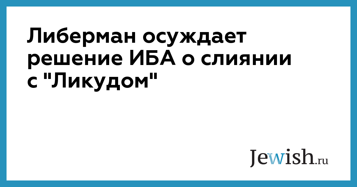 Либерман осуждает решение ИБА о слиянии с "Ликудом"