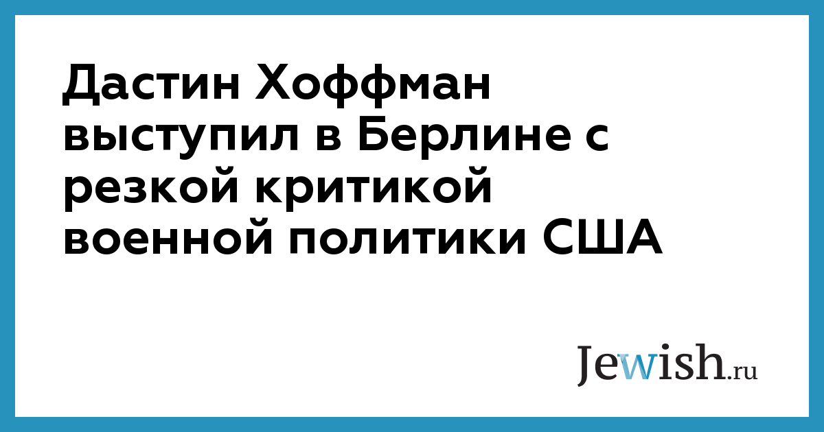 Дастин Хоффман выступил в Берлине с резкой критикой военной политики США