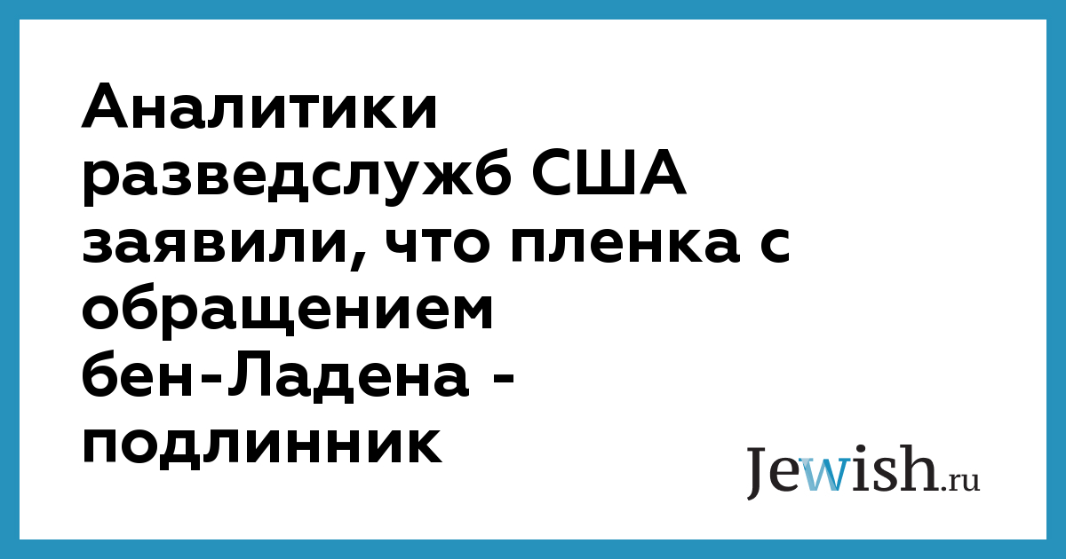 Аналитики разведслужб США заявили, что пленка с обращением бен-Ладена — подлинник