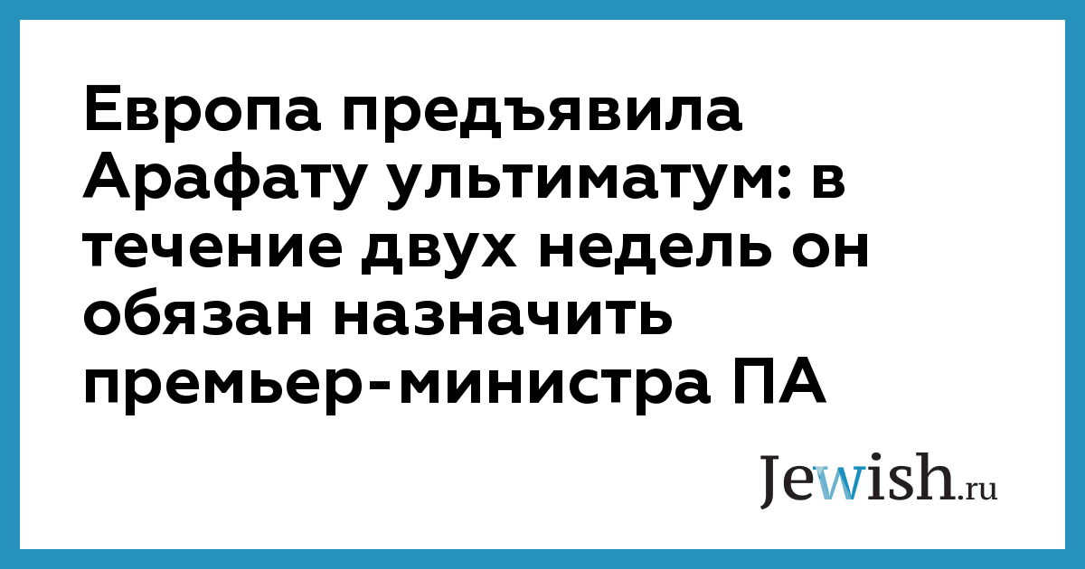 Европа предъявила Арафату ультиматум: в течение двух недель он обязан назначить премьер-министра ПА