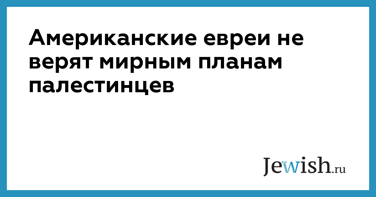 Американские евреи не верят мирным планам палестинцев